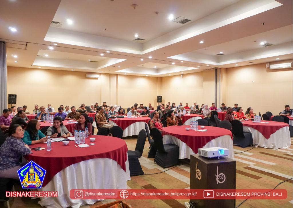 Kepala Dinas Ketenagakerjaan dan ESDM Provinsi Bali memberikan sambutan sekaligus membuka acara Pembinaan dan Peningkatan Kompetensi Mediator Hubungan Industrial (MHI) Wilayah Bali, Jawa Timur, NTT dan NTB yang diikuti oleh 70 peserta yang terdiri dari 20 MHI dari provinsi Jawa Timur, 11 orang MHI dari provinsi NTB, 11 orang MHI dari provinsi NTT, dan 28 orang MHI dari provinsi Bali.
