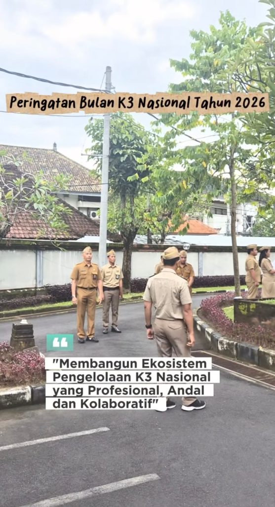 Hari Senin (Soma), 12 Januari 2025 bertempat di Halaman Disnaker ESDM Provinsi Bali dilaksanakan Apel Peringatan Bulan K3 Nasional Tahun 2026 dengan Tema “Membangun Ekosistem Pengelolaan K3 Nasional yang Profesional, Andal dan Kolaboratif” yang dipimpin langsung oleh Kepala Dinas Ketenagakerjaan dan ESDM Provinsi Bali dan dihadiri oleh semua pegawai di Lingkungan Disnaker ESDM.
