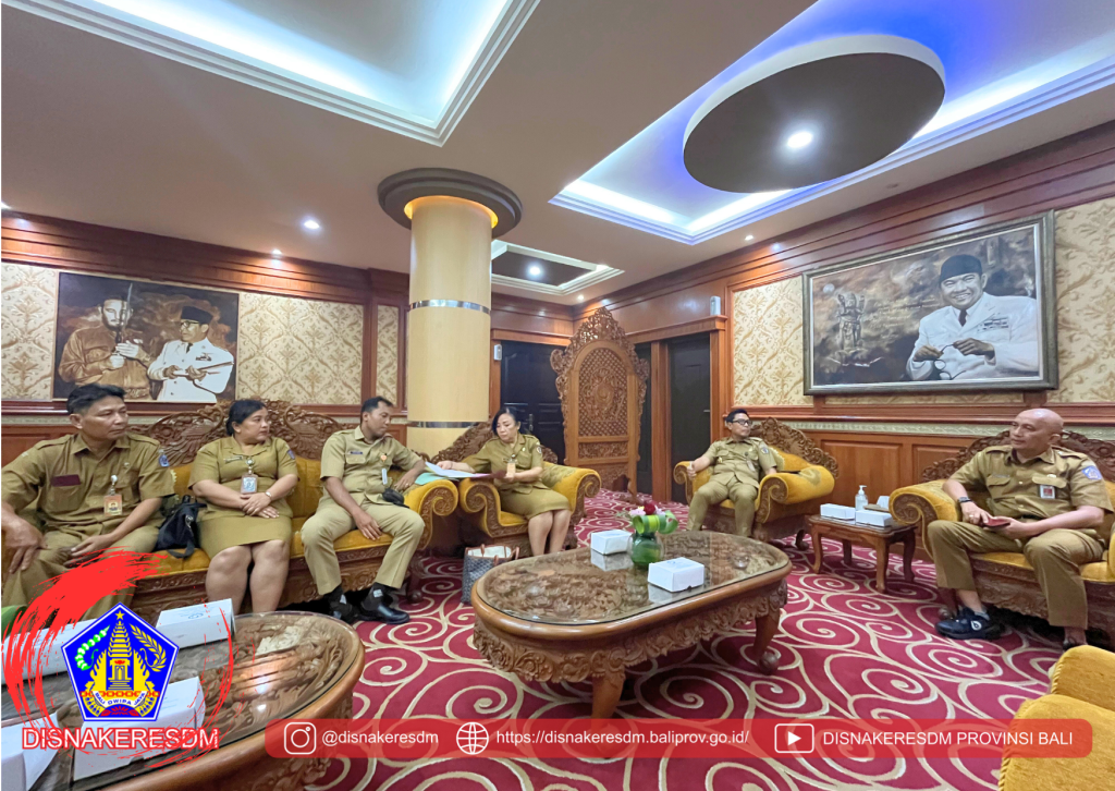 Kepala Dinas Ketenagakerjaan dan ESDM Provinsi Bali bersama Kepala Dinas Tenaga Kerja dan Sertifikasi Kompetensi Kota Denpasar melaksanakan audiensi dengan Bapak Wakil Wali Kota Denpasar dalam rangka membahas pelaksanaan kegiatan Bursa Kerja, Edukasi, dan Vokasi Nasional Tahun 2025.