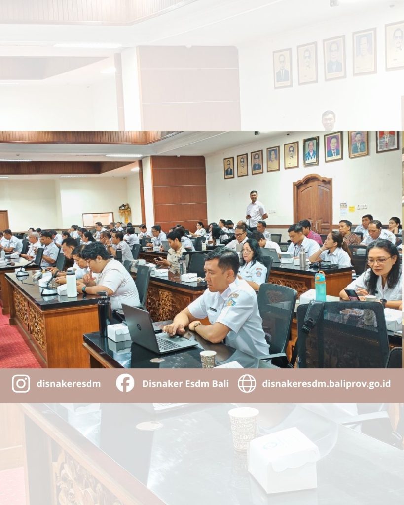 Sekretaris Dinas Ketenagakerjaan dan Energi Sumber Daya Mineral Provinsi Bali menghadiri Bimbingan Teknis (Bimtek) Terpadu SP4N-LAPOR! dan PPID. Kegiatan yang berlangsung di Ruang Rapat Sabha Adhyasta Utama, Inspektorat Daerah Provinsi Bali ini mengusung tema “Akselerasi Penyelesaian Pengaduan dan Pengelolaan Informasi: Mewujudkan Respon Cepat Pelayanan Publik Provinsi Bali.”