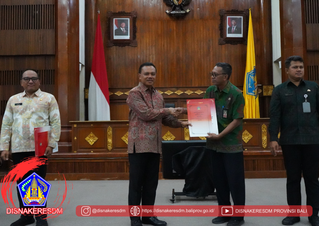 Dinas Ketenagakerjaan dan ESDM Provinsi Bali menerima penghargaan dari Gubernur Bali atas capaian sebagai Perangkat Daerah yang telah melaksanakan Pemusnahan Arsip Tahun 2025 di lingkungan Pemerintah Provinsi Bali. Penghargaan tersebut diserahkan langsung oleh Sekretaris Daerah Provinsi Bali.