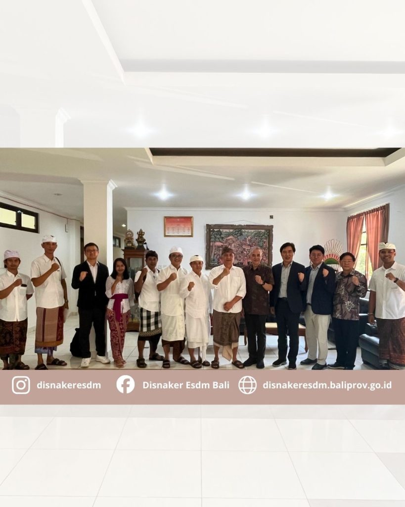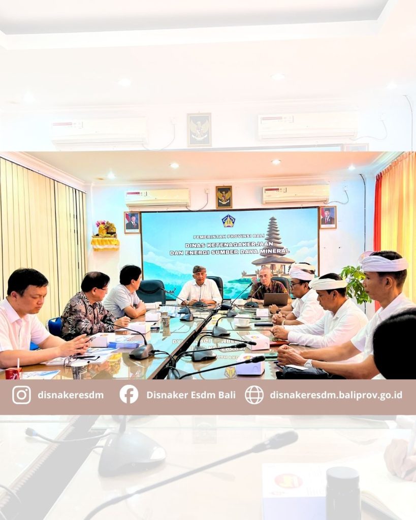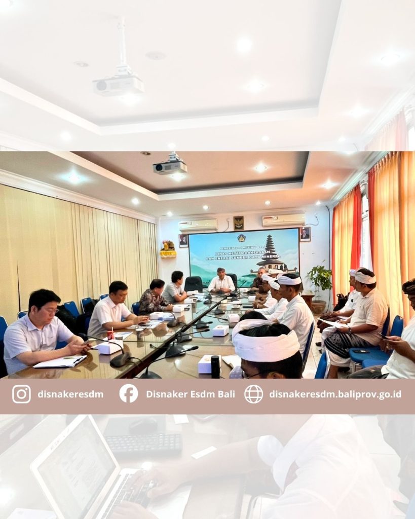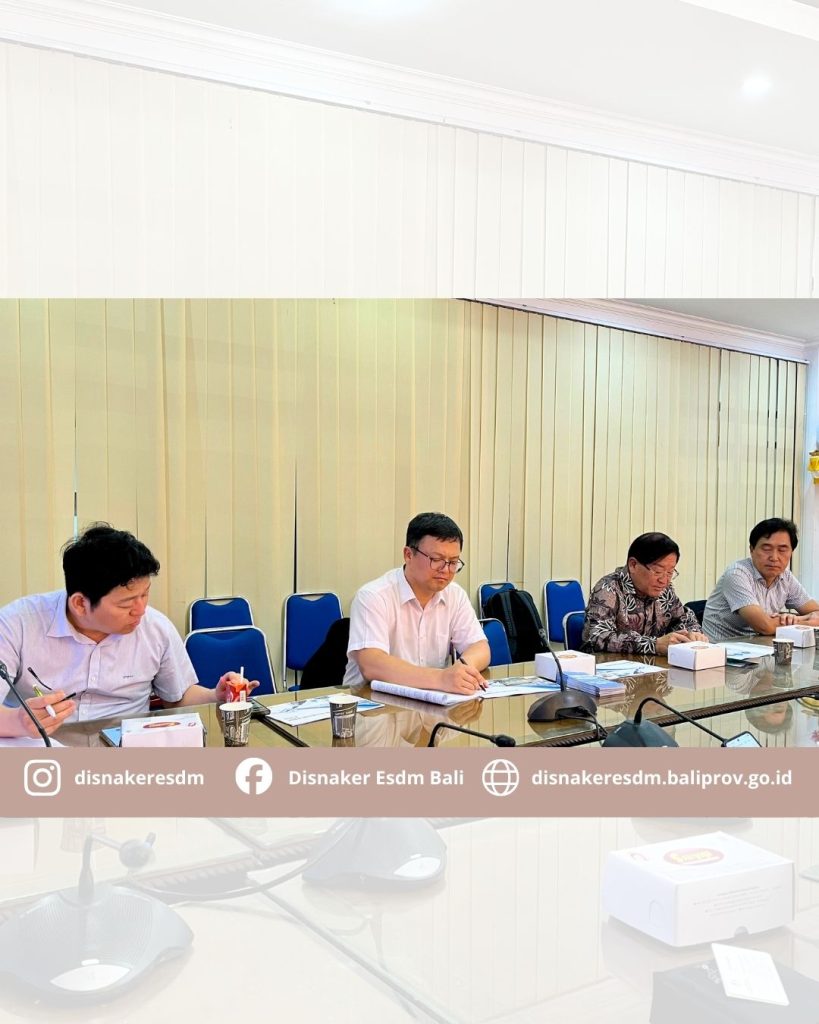 Kepala Dinas Ketenagakerjaan dan ESDM Provinsi Bali di dampingi Kabid ESDM dan tim menyelenggarakan rapat perihal peluang kerja sama dari Korea dengan Provinsi Bali melalui Bappenas RI tentang rencana kerjasama dan usulan hibah ODA melalui Korea Aumobile Environtmental Association (KAEA).