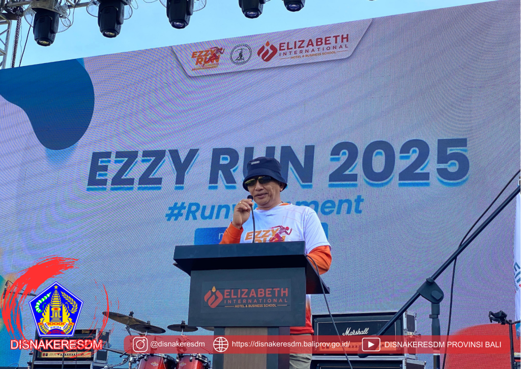 Kepala Dinas Ketenagakerjaan dan ESDM Provinsi Bali menghadiri sekaligus memberikan sambutan dalam acara Ezzy Run 2025 yang diselenggarakan oleh LPK Elizabeth Internasional.