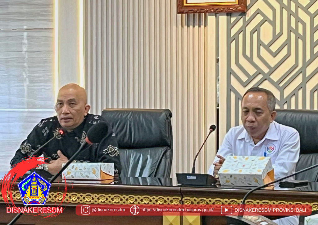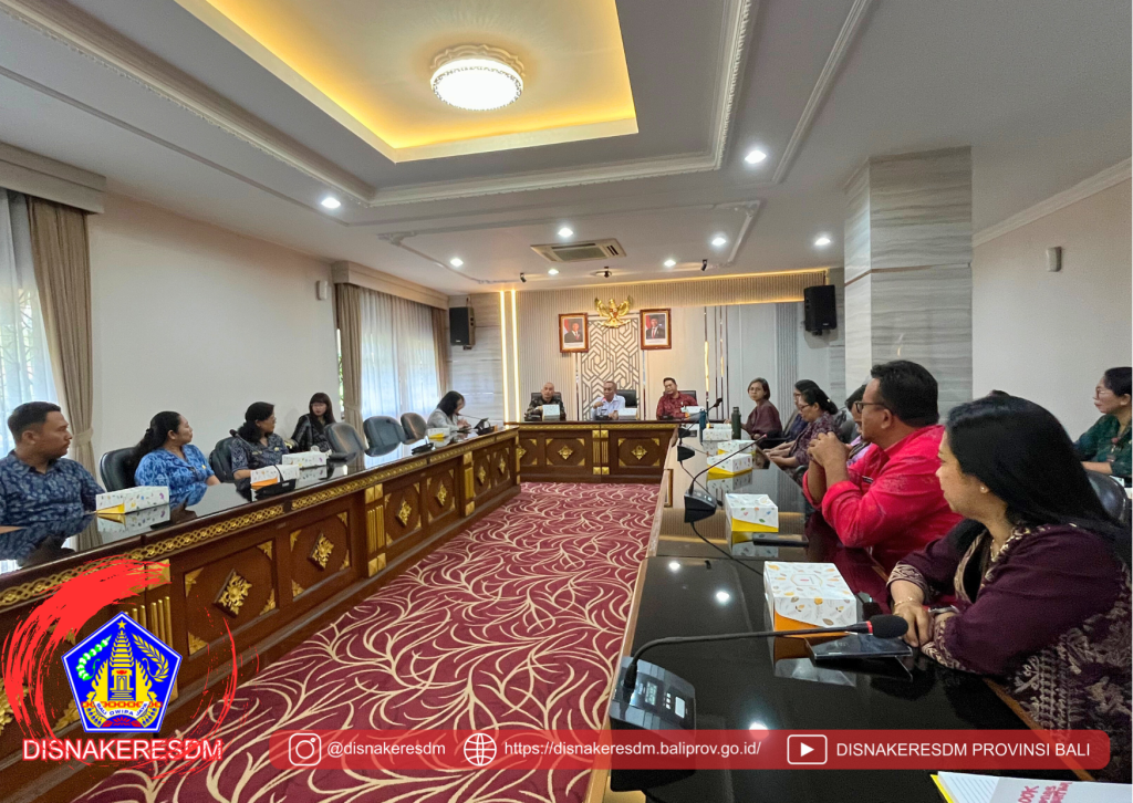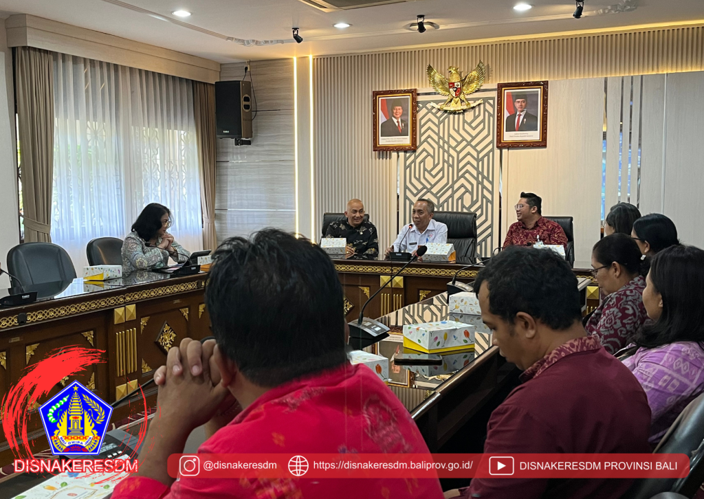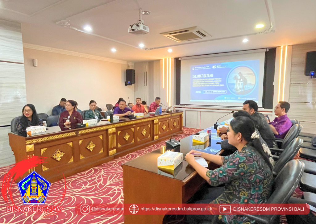 Kepala Dinas Ketenagakerjaan dan ESDM Provinsi Bali, didampingi Kepala Bidang Bina Hubungan Industrial dan Pengawasan Ketenagakerjaan, menghadiri sekaligus memberikan sambutan dalam acara Focus Group Discussion (FGD) terkait Implementasi Program Jaminan Sosial Ketenagakerjaan pada Ekosistem Nelayan di Provinsi Bali.
