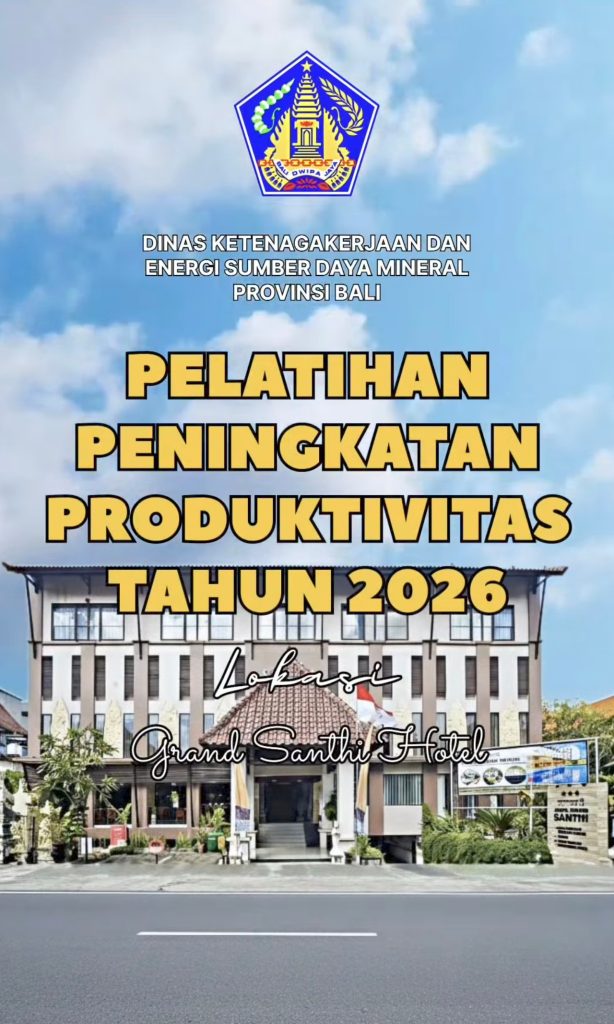 Instruktur Produktivitas DisnakerESDM Provinsi Bali hari ini bertugas sebagai narasumber dalam kegiatan Pelatihan Peningkatan Produktivitas di The Grand Santhi Hotel Kota Denpasar.