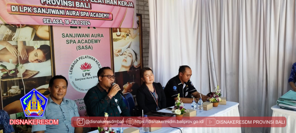 Kepala Bidang Pelatihan dan Produktivitas (LATTAS) membuka Kegiatan Visitasi Akreditasi Lembaga Pelatihan Kerja Tahun 2024 di 4 LPK yang berada di Kabupaten Jembrana yaitu LPK Bali Cempaka College, LPK Nihongo Kyouiku Sentana, LPK OTC Bali, dan LPK Sanjiwani Aura SPA Academy. Acaara berlangsung selama 2 hari mulai dari tanggal 15 s/d 16 Juli 2024 bersama Tim Asessor Akreditasi LPK Provinsi Bali.