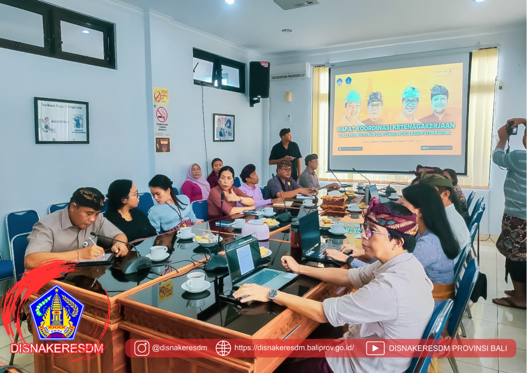Kepala Dinas Ketenagakerjaan dan ESDM Provinsi Bali didampingi pejabat eselon III di sektor ketenagakerjaan beserta Ketua APKI, AMHI dan IKAPERJASI menerima audiensi dari Kepala Dinas Perindustrian dan Tenaga Kerja Kabupaten Badung beserta jajaran, dalam pertemuan yang berlangsung hangat dan konstruktif.