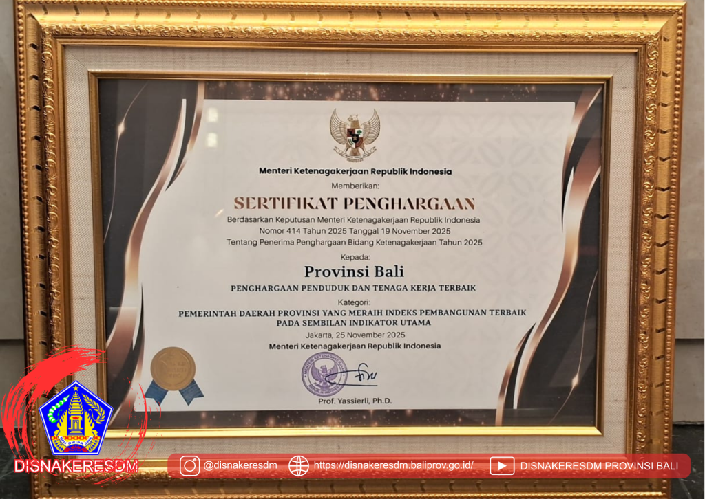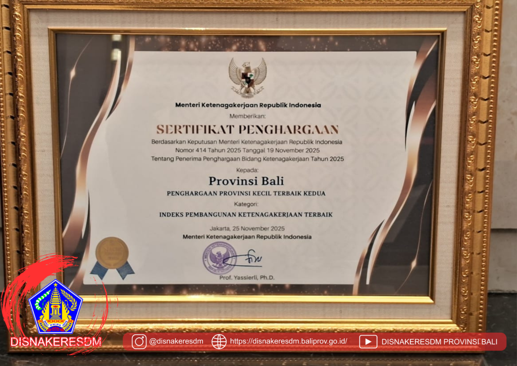 Prestasi ini menjadi bukti keseriusan Pemprov Bali dalam meningkatkan kualitas pembangunan ketenagakerjaan, produktivitas, serta kesejahteraan masyarakat.