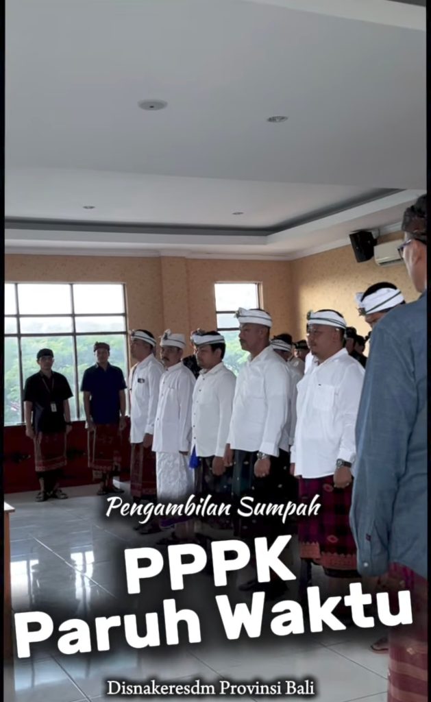 Kepala Dinas Ketenagakerjaan dan Energi Sumber Daya Mineral Provinsi Bali secara resmi melantik dan mengambil sumpah jabatan Pegawai Pemerintah dengan Perjanjian Kerja (PPPK) Paruh Waktu di lingkungan DisnakerESDM Provinsi Bali.