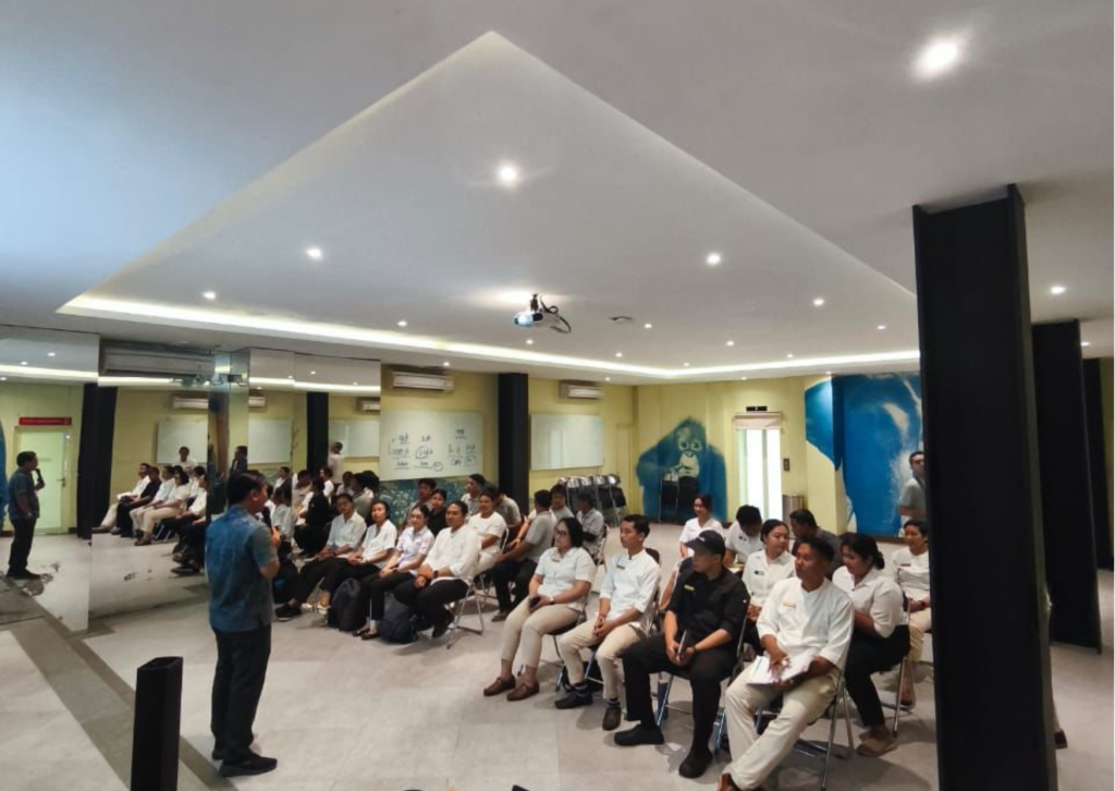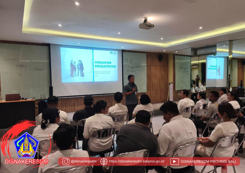 Instruktur Produktivitas DisnakerESDM melaksanakan tugas sebagai narasumber pada kegiatan Pelatihan Peningkatan Produktivitas di perusahaan Sanctoo Suites & Villas, Kabupaten Gianyar.