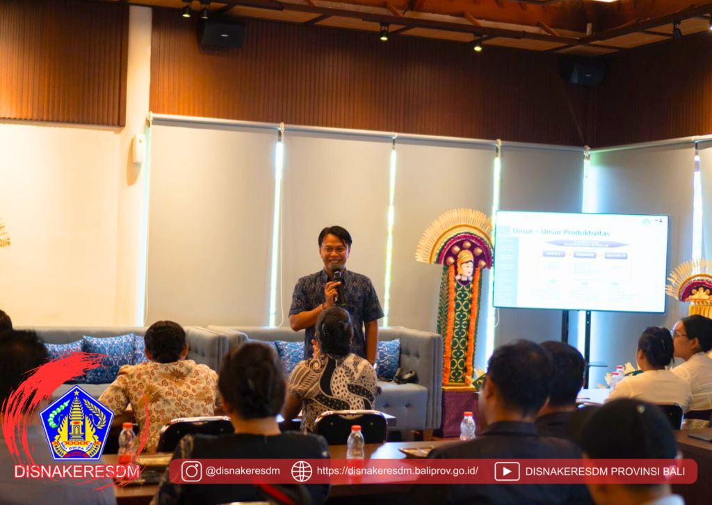 Instruktur Produktivitas DisnakerESDM melaksanakan tugas sebagai narasumber pada kegiatan Pelatihan Peningkatan Produktivitas di perusahaan The Hava Ubud A Pramana Experience, Kabupaten Gianyar.