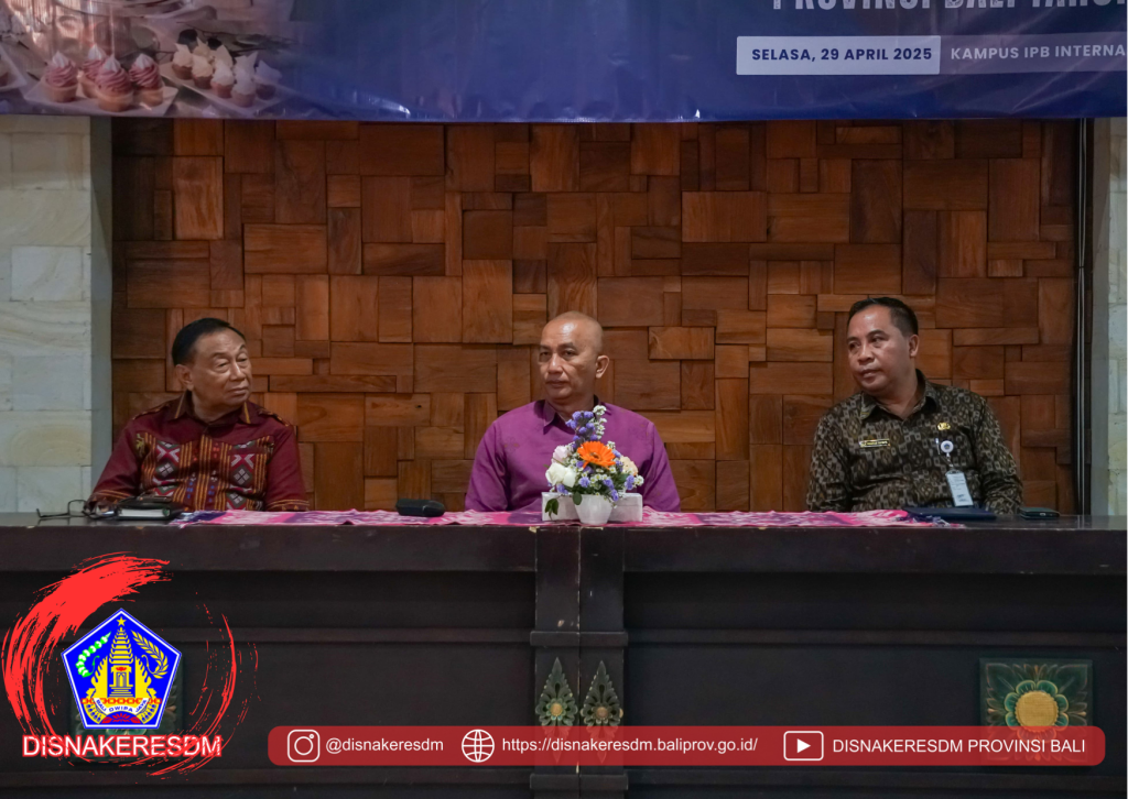 Pada Hari ini Selasa Anggara Umanis Kuningan tgl 29 April 2025, bertempat di Kampus IPB Internasional -SPB, Bapak Kepala Dinas Ketenagakerjaan dan ESDMProvinsi Bali Hadir dan memberikan sambutan pada acara Sertifikasi Tenaga Kerja Daerah Bali Tahun 2025 Bidang Commis Pastry yang Fasilitasi Dinas Ketenagakerjaan dan ESDM Provinsi Bali Tahun 2025.