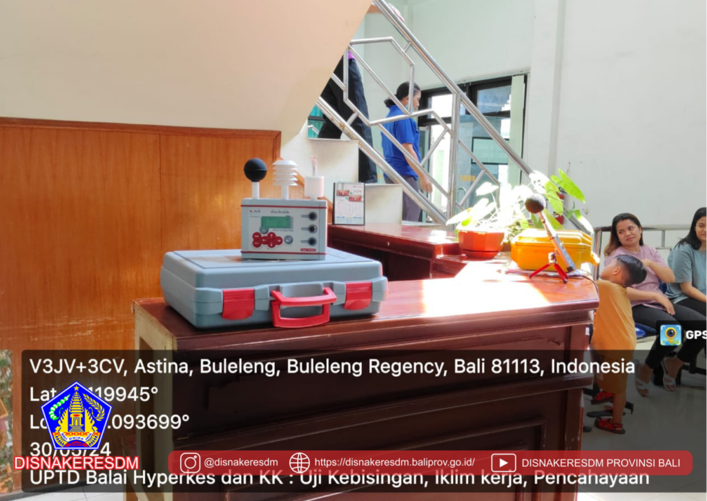 Kamis (Wraspati Paing, Prangbakat) tanggal 30 Mei 2024, Tim UPTD Balai Hyperkes dan KK melakukan pengujian ke RSUD Buleleng. Parameter yang diuji diantaranya kebisingan, intensitas pencahayaan, dan iklim kerja masing-masing 7 titik, serta Ambien 2 titik dan emisi 1 titik. Total pengujian hari ini adalah 24 titik uji.