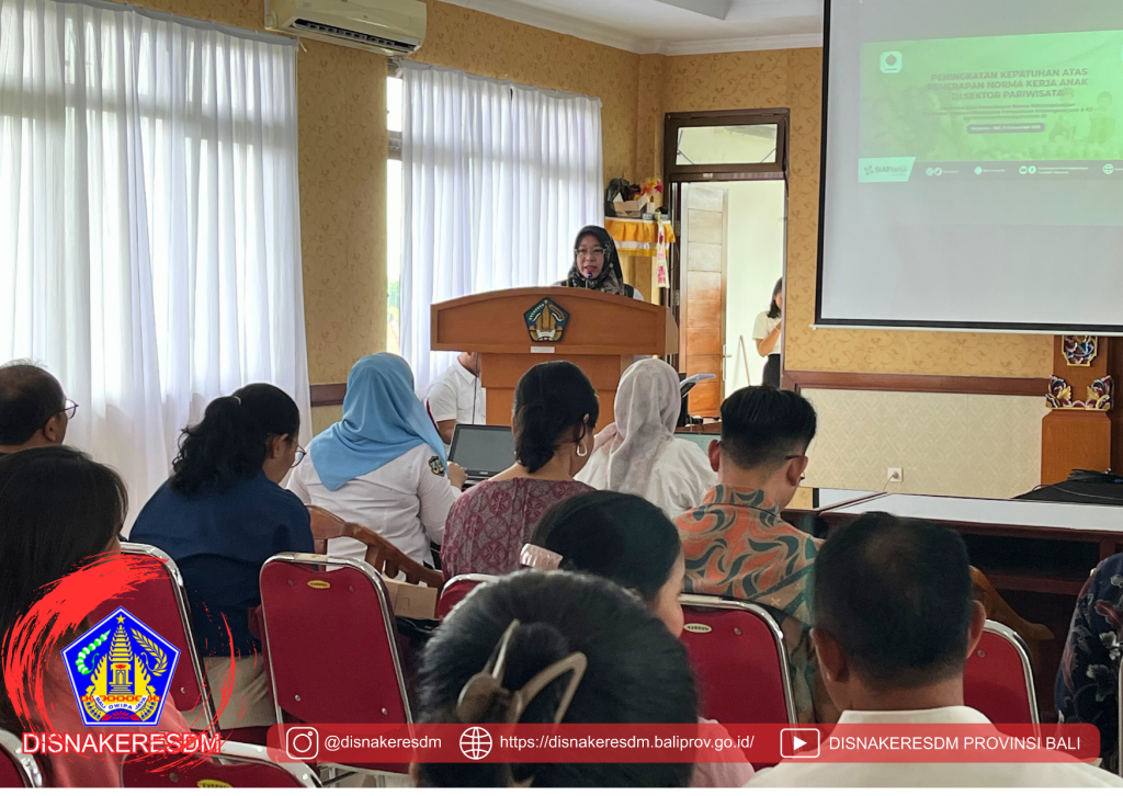 Kepala Dinas Ketenagakerjaan dan ESDM Provinsi Bali bersama Ibu Kabid BHI & PK membuka kegiatan Peningkatan Kepatuhan atas Penerapan Norma Kerja Anak di Sektor Pariwisata yang diselenggarakan oleh Direktorat Bina Pemeriksaan Norma Ketenagakerjaan.