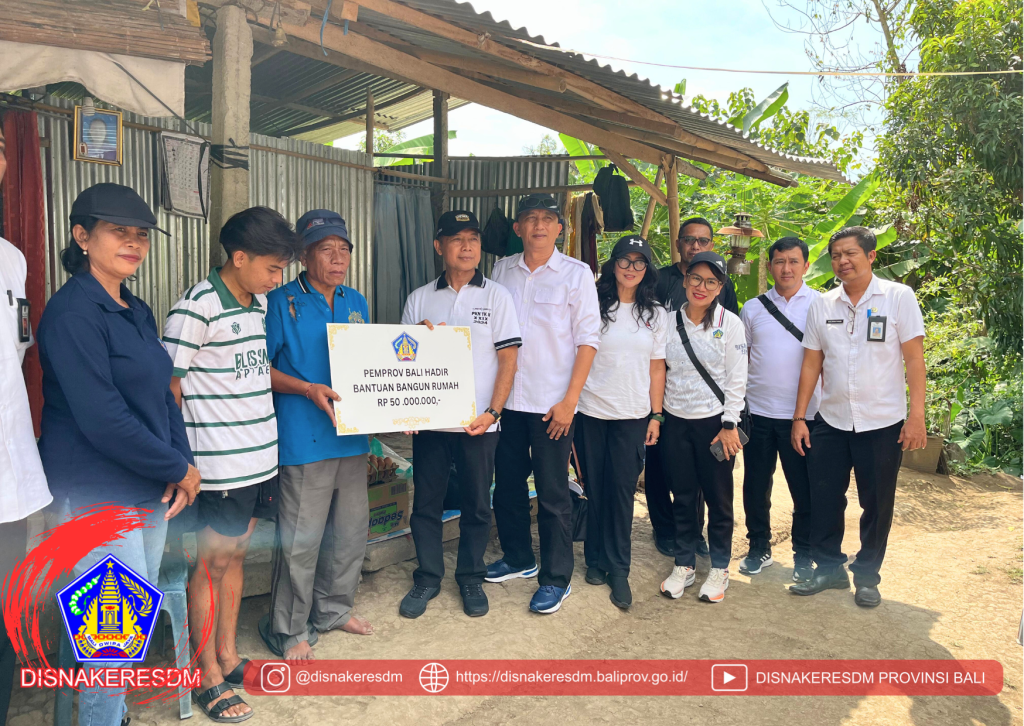 Pemerintah Provinsi Bali kembali menunjukkan komitmennya dalam meningkatkan kesejahteraan masyarakat. Kepala Dinas Ketenagakerjaan dan ESDM Provinsi Bali bersama Kepala Dinas Kebudayaan Provinsi Bali, didampingi Dinas Sosial Provinsi Bali dan jajaran, menyerahkan bantuan sosial berupa bantuan dana sebesar Rp.50.000.000,- untuk program bedah rumah kepada Bapak Made Budiasa (Pekerja Rentan) di Desa Menyali, Kec. Sawan, Kab. Buleleng.