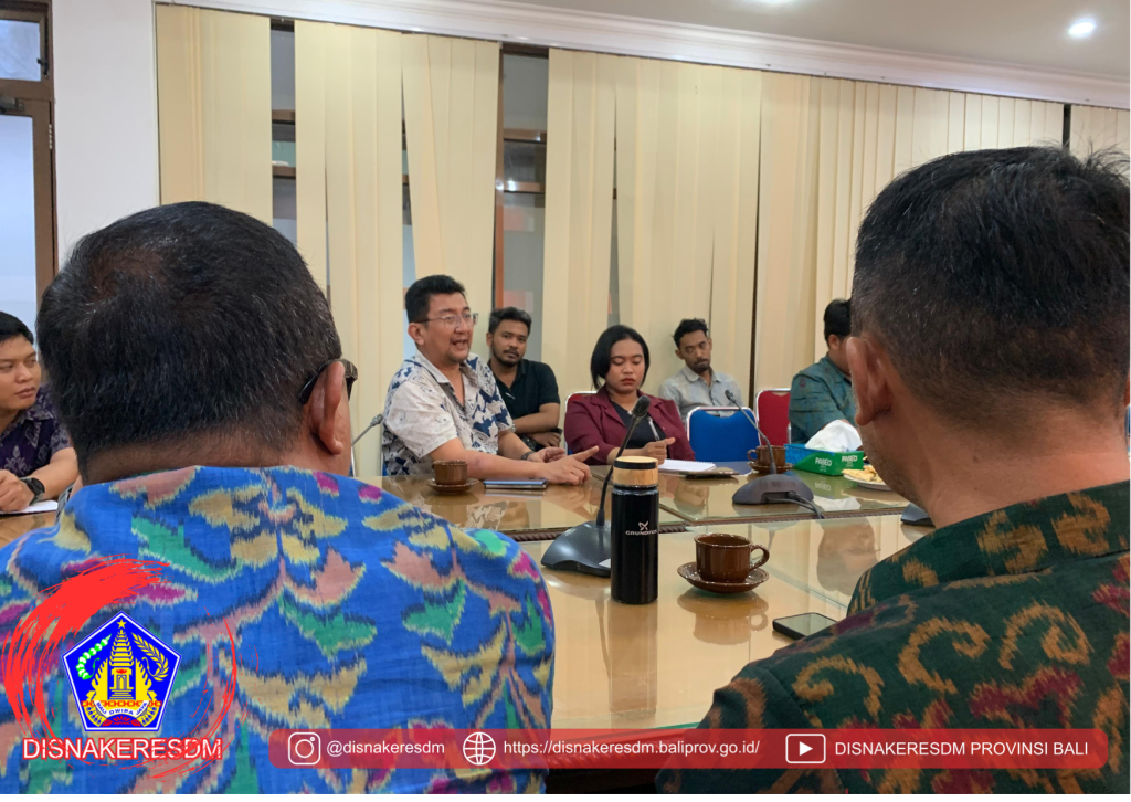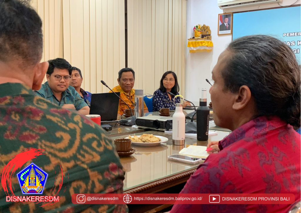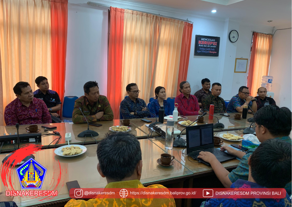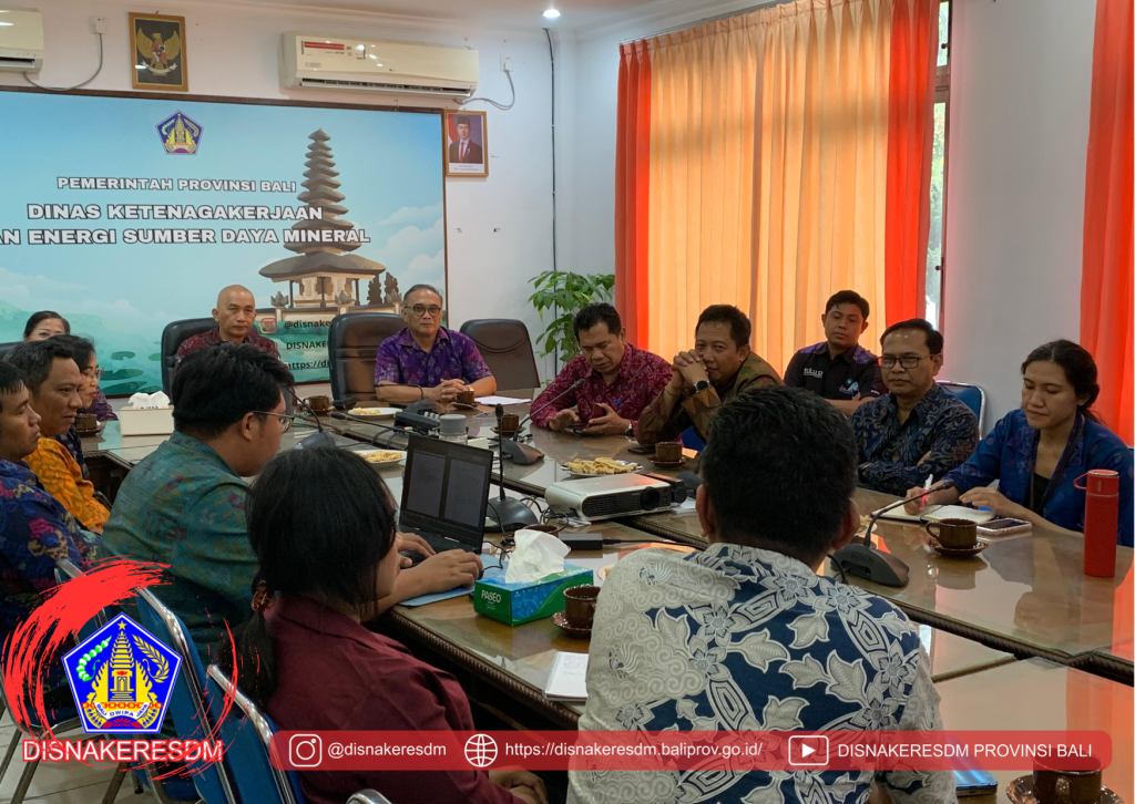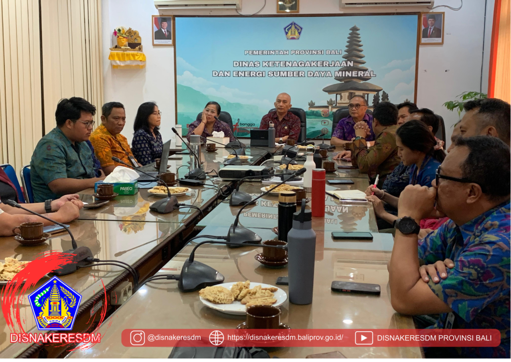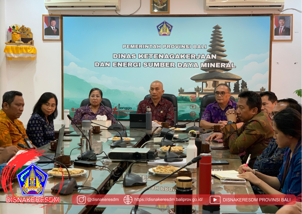 KadisnakerESDM Provinsi Bali didampingi Koordinator Tim Percepatan Energi Bersih dan Kabid ESDM menyelenggarakan rapat terkait sinergi percepatan infrastruktur energi baru terbarukan dan ketenagalistrikan jangka pendek – menengah.