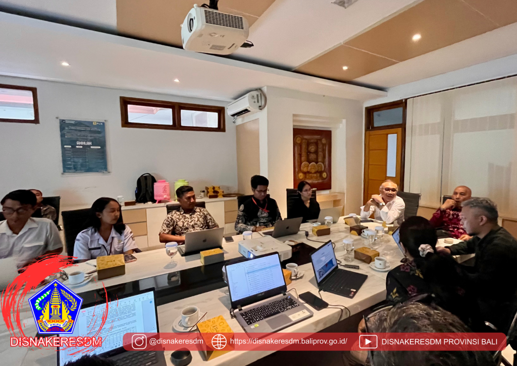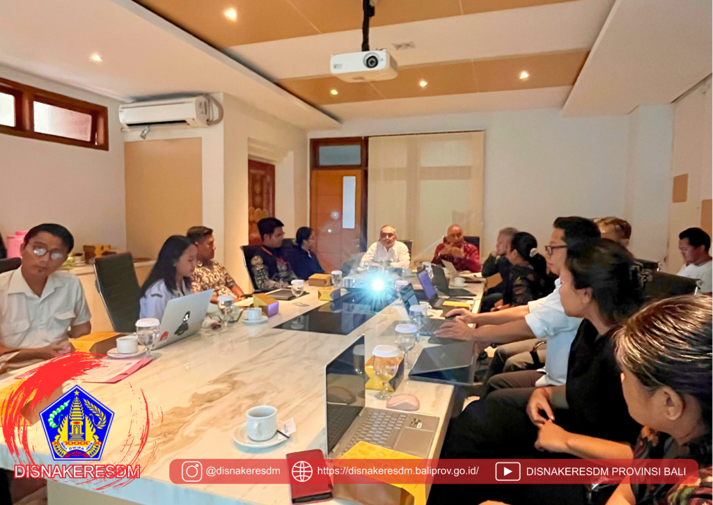 Kepala Dinas Ketenagakerjaan dan ESDM Provinsi Bali didampingi Kepala Bidang ESDM memimpin rapat Review Rencana Umum Energi Daerah (RUED) 2020–2050 dan Rencana Umum Ketenagalistrikan Daerah (RUKD) 2020–2039 sebagai langkah strategis dalam memperbarui arah kebijakan energi dan ketenagalistrikan di Bali.
