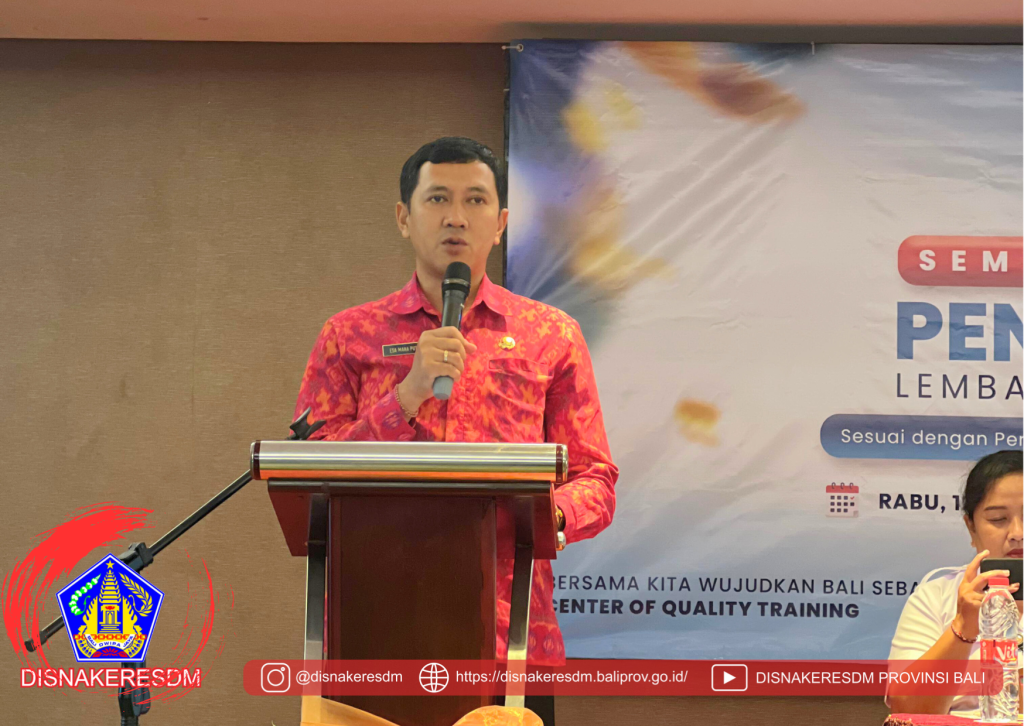 Sekretaris Dinas Ketenagakerjaan dan Energi Sumber Daya Mineral Provinsi Bali mewakili Kepala Dinas secara resmi membuka Seminar Kalibrasi Pengelolaan Lembaga Pelatihan Kerja (LPK) yang diselenggarakan oleh DPD HILLSI Provinsi Bali, bertempat di Hotel Sense Sunset Seminyak, Kabupaten Badung.