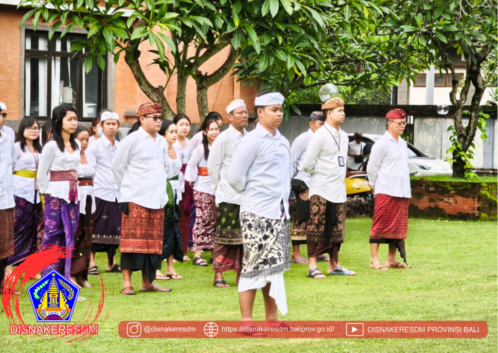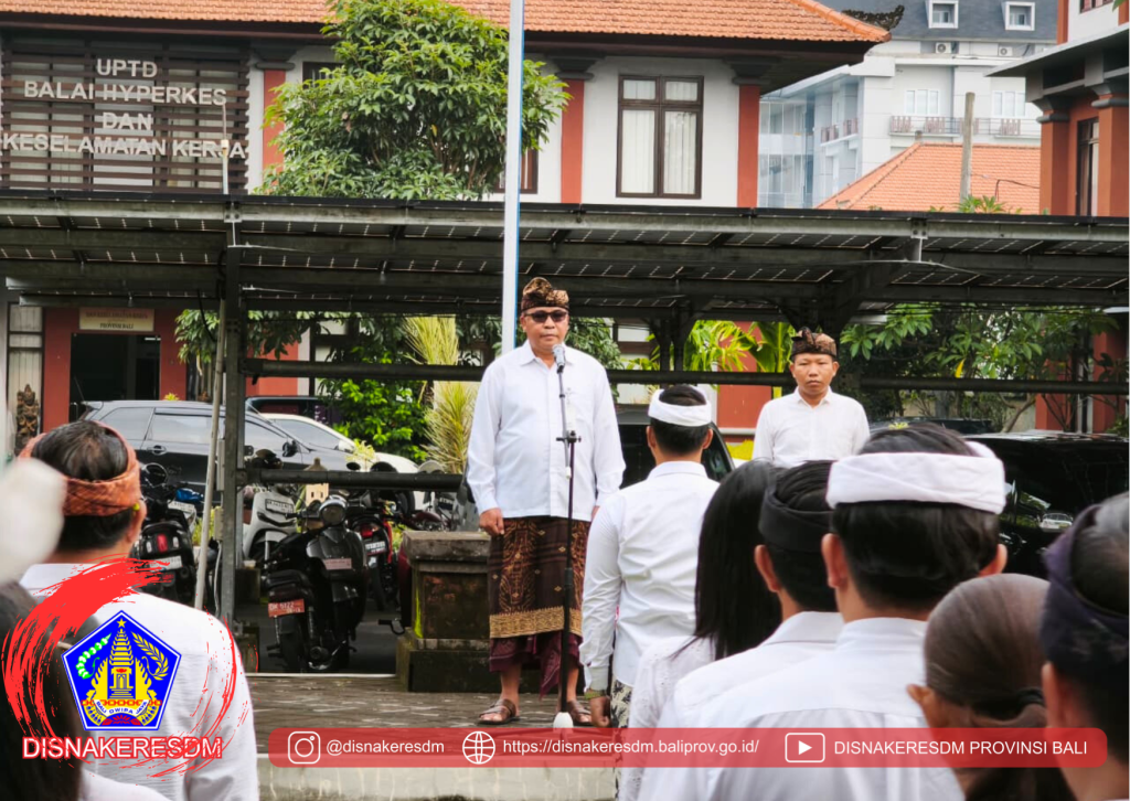 Jumat (Sukra Keliwon Pujut) Tanggal 19 Desember 2025, bertempat di halaman Kantor Dinas Ketenagakerjaan dan ESDM Provinsi Bali, dilaksanakan upacara peringatan Hari Bela Negara ke-77 Tahun 2025.