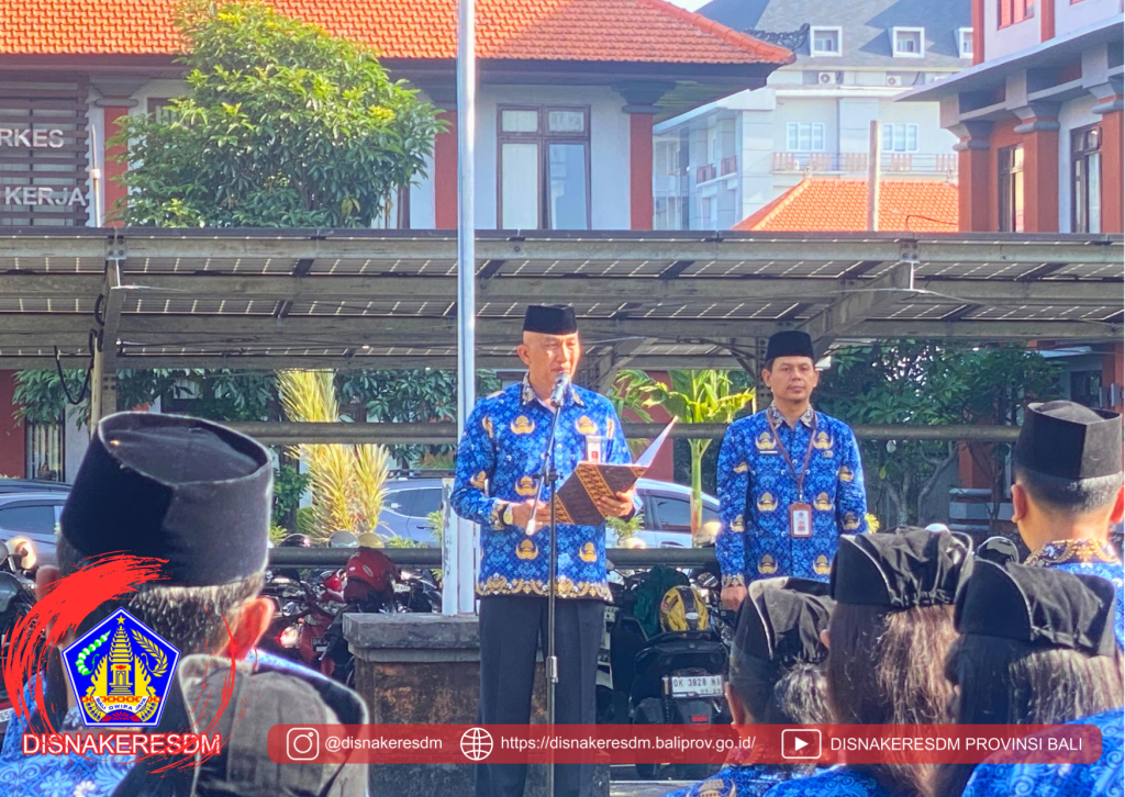 Kepala Dinas Ketenagakerjaan dan ESDM Provinsi Bali memimpin langsung pelaksanaan upacara peringatan Hari Sumpah Pemuda ke-97 yang berlangsung khidmat di lingkungan kantor Disnaker ESDM Provinsi Bali.