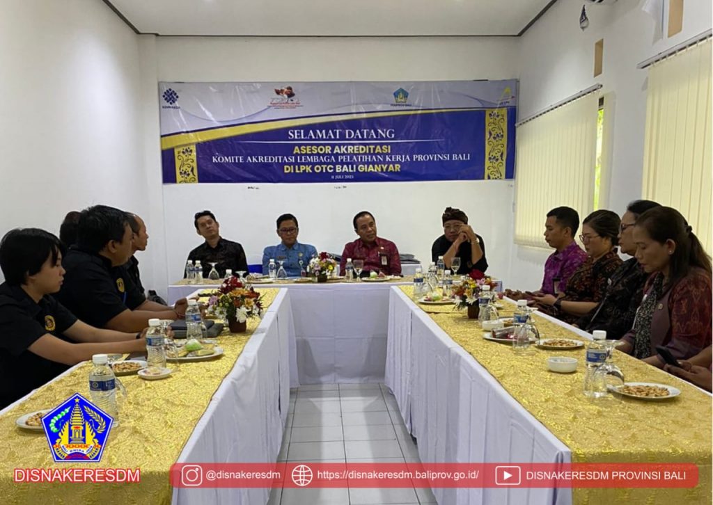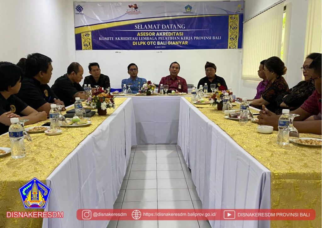 Selasa (anggara pon warigadean), tanggal 11 Juli 2023 berlangsung kegiatan Visitasi Akreditasi LPK Tahun 2023 bertempat di LPK OTC Bali, dan LPK BSSA Kabupaten Gianyar. Acara dibuka oleh Kepala Bidang Pelatihan dan Produktivitas Disnakeresdm Provinsi Bali, didampingi oleh Kasi Standarisasi dan sertifikasi, Assesor KA LPK , dan Bapak Kabid Lattas Disnaker Kabupaten Gianyar.
