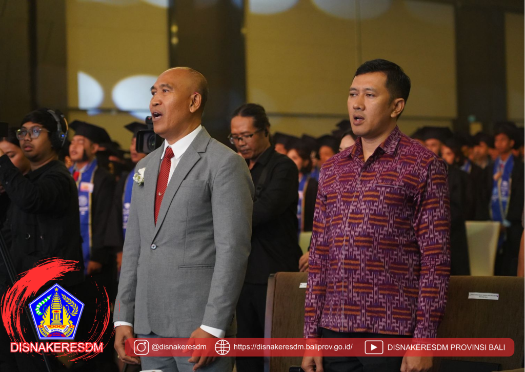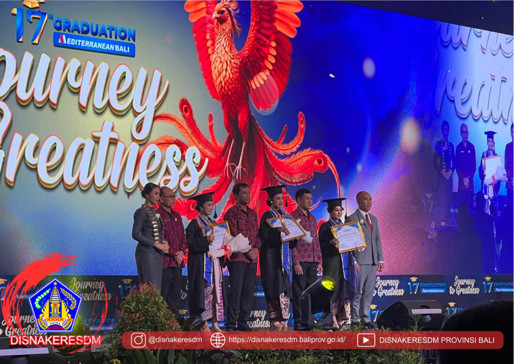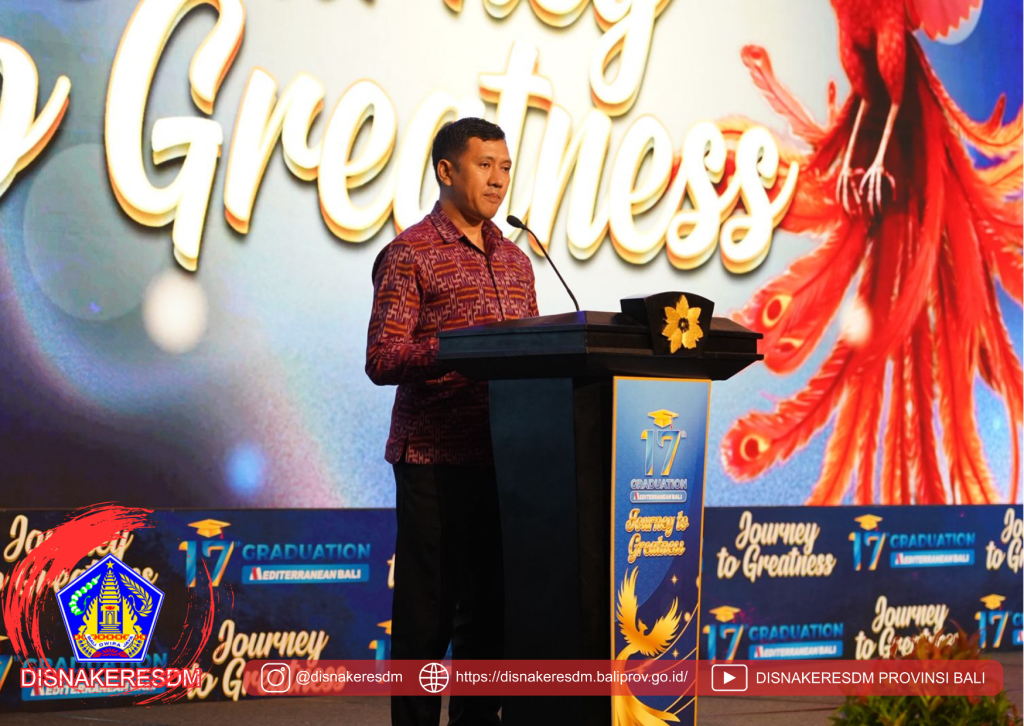 Sekretaris Dinas Ketenagakerjaan dan ESDM Provinsi Bali mewakili Kepala Dinas Ketenagakerjaan dan ESDM Provinsi Bali memberikan sambutan dalam acara Wisuda ke- XVII LPK Mediterranean Bali yang diikuti sebanyak 887 wisudawan/ti dari Mediterranean Denpasar dan Gianyar.